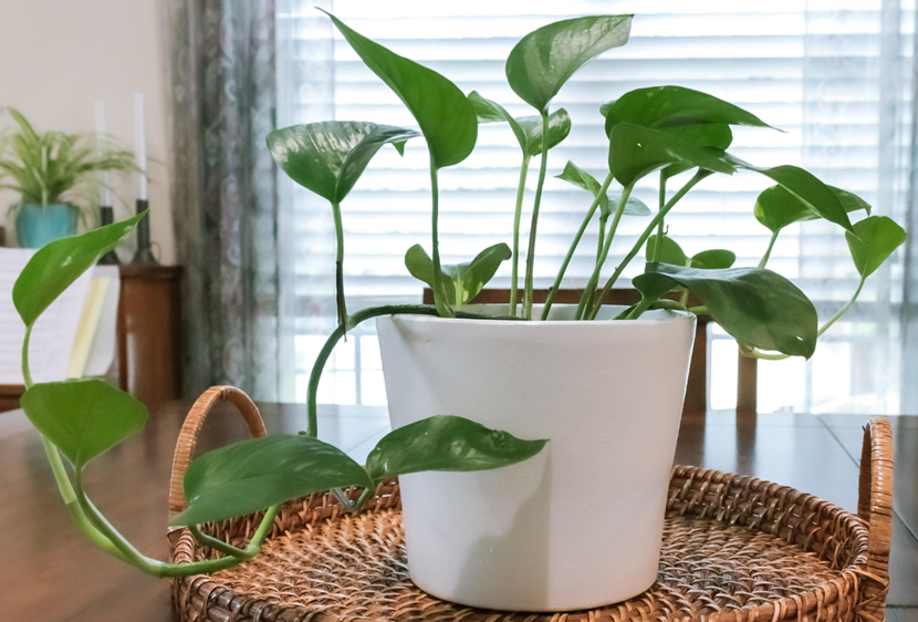 Outra opção bastante utilizada é o Filodendro-pendente, que também apresenta crescimento vigoroso e folhas ornamentais que se destacam na decoração.